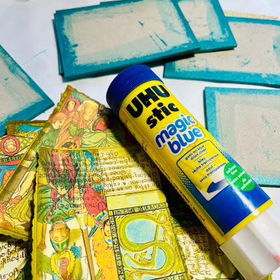 Supplies: GSLC Hanging Sign Set 1, Brown, Orange, and Gold Acrylic Paints, Pencil, Resized and Printed Vintage Pub Signs, Paintbrush, UHU GlueStick