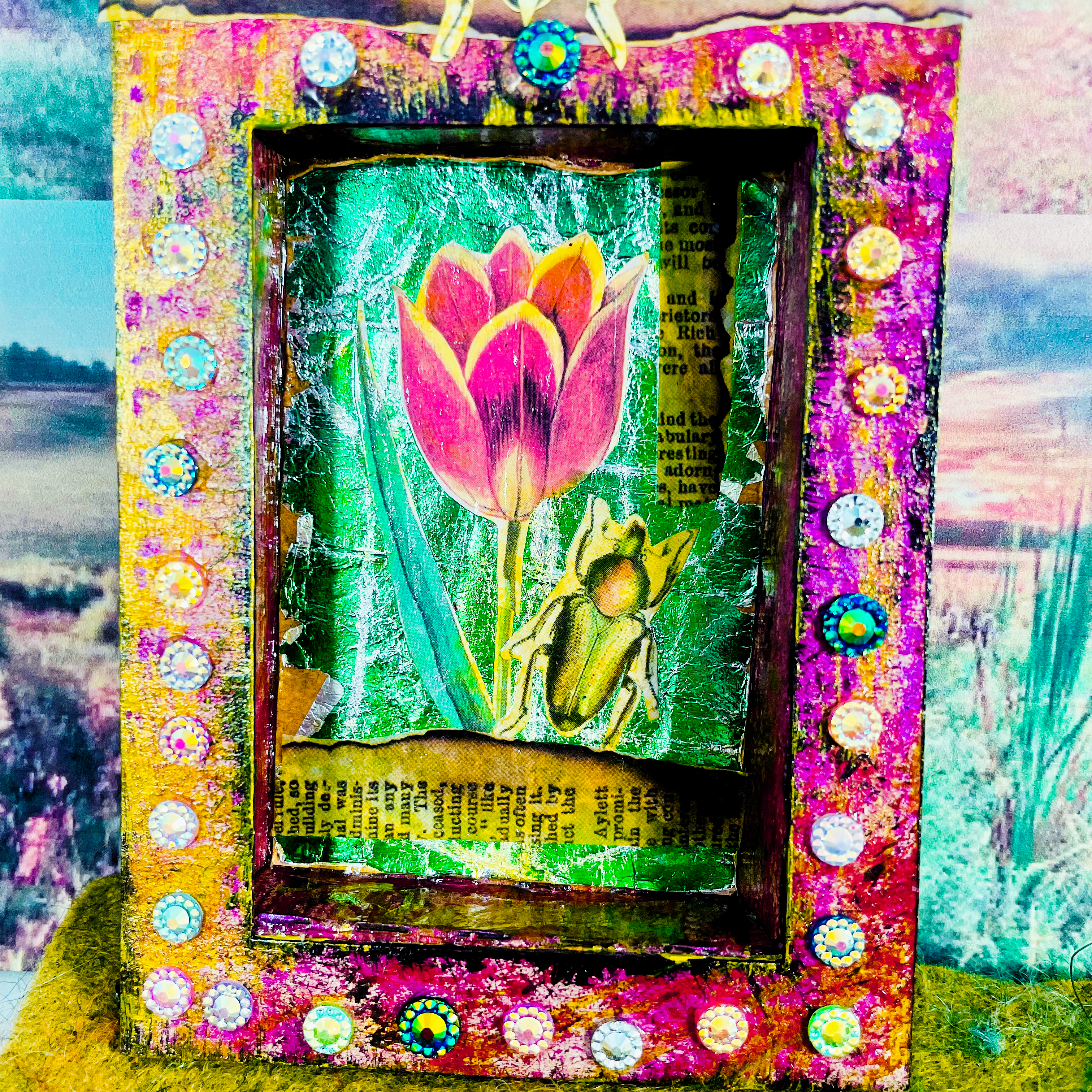 - Once Fully Dry Add Recollection Vintage Gemstone Gemms with Dots of WeldBond Glue.